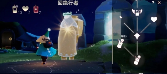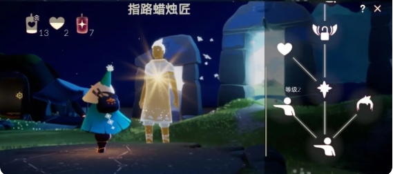 在探索王國(guó)的時(shí)候,旅人會(huì)在各個(gè)地點(diǎn)找到泛著藍(lán)光的先祖靈魂。跟隨靈魂的記憶碎片,旅人將了解更多關(guān)于先祖時(shí)代的歷史和故事。用蠟燭點(diǎn)亮石像后,旅人會(huì)將先祖靈魂返送回天際。