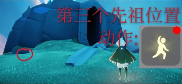 2、第二個(gè)先祖在最高的巖石的下面,也就是第一個(gè)先祖洞口的對(duì)面巖石的下方,我們飛往巖石最高處的下方就可以看到;