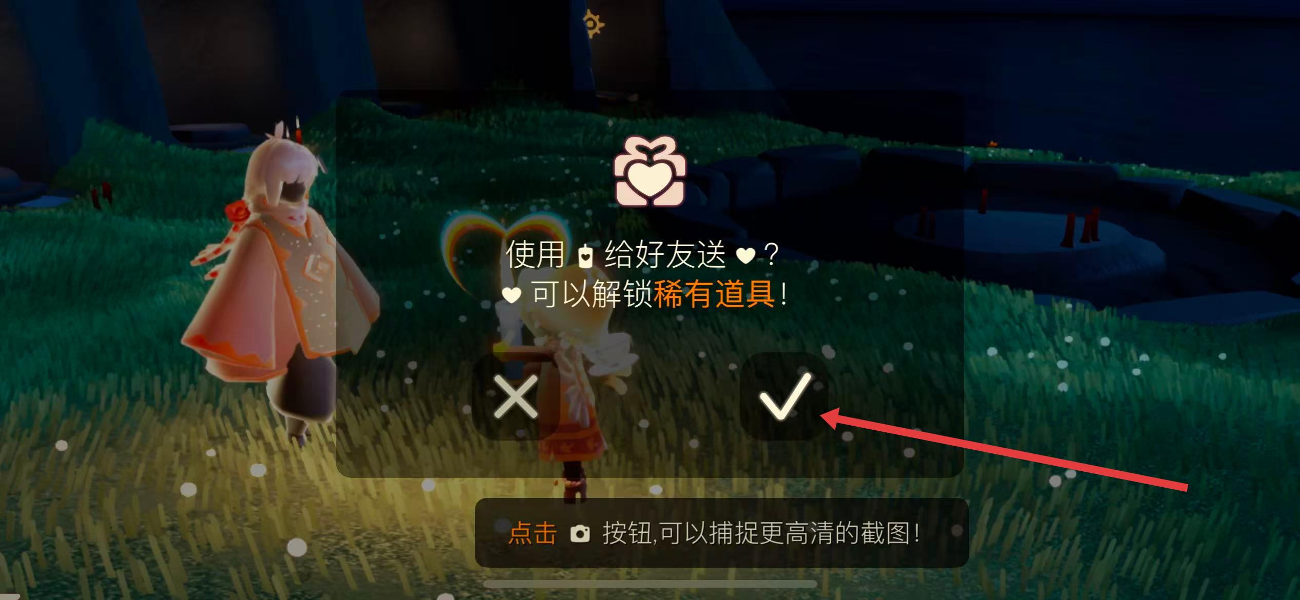 4、讓好友點(diǎn)擊人物頭上出現(xiàn)的贈(zèng)送按鈕,即可給好友送心。