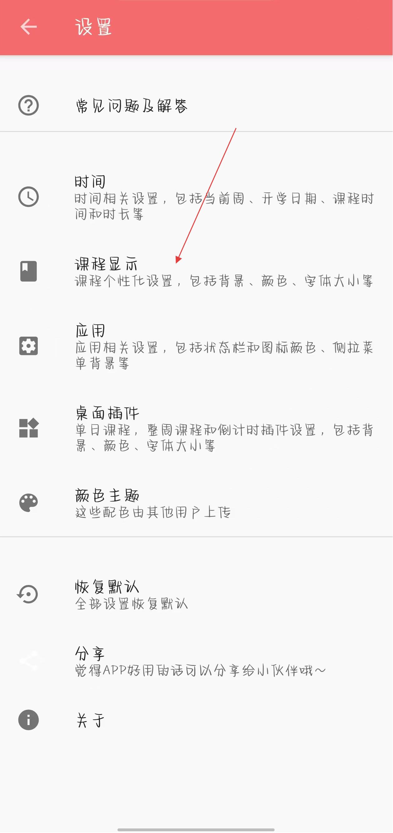 3、在設(shè)置頁面里,點(diǎn)擊課程顯示選項,進(jìn)入課程個性化設(shè)置界面。