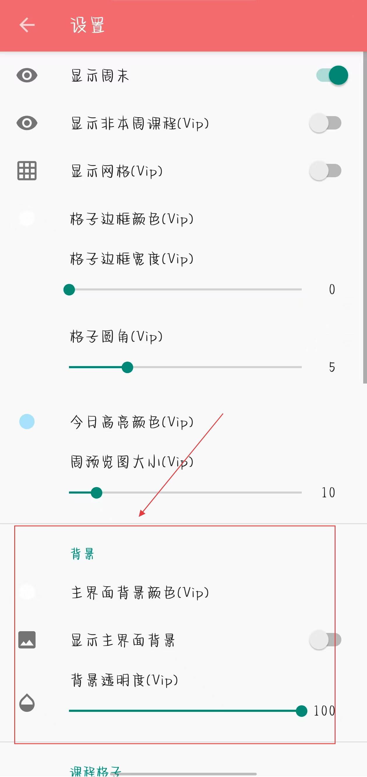 4、在課程顯示設(shè)置中,找到背景相關(guān)設(shè)置項,可根據(jù)需求調(diào)整背景顏色、透明度等參數(shù),完成背景設(shè)置。