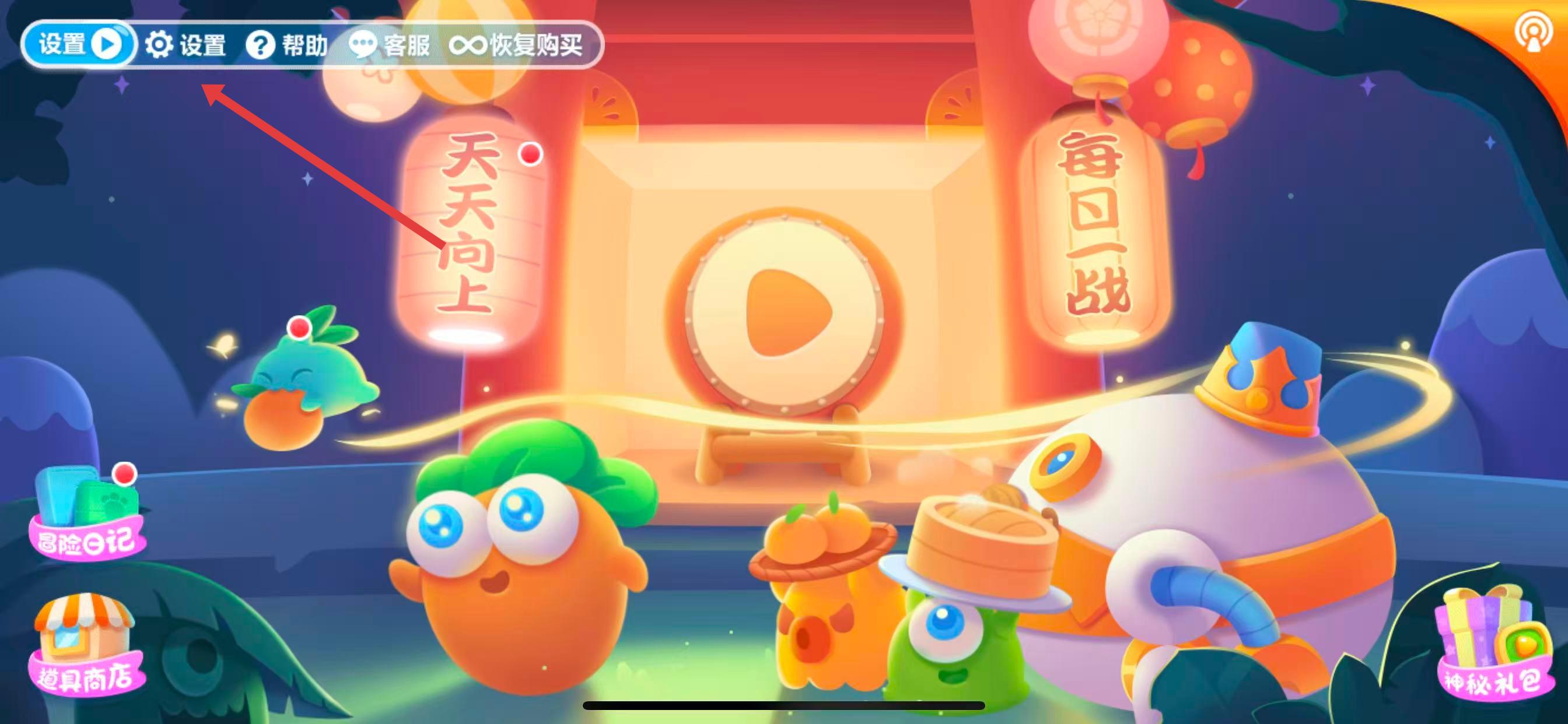 1、進入保衛(wèi)蘿卜2游戲主界面,點擊如圖中箭頭所指的播放按鈕,先進入到游戲關(guān)卡選擇等相關(guān)界面。