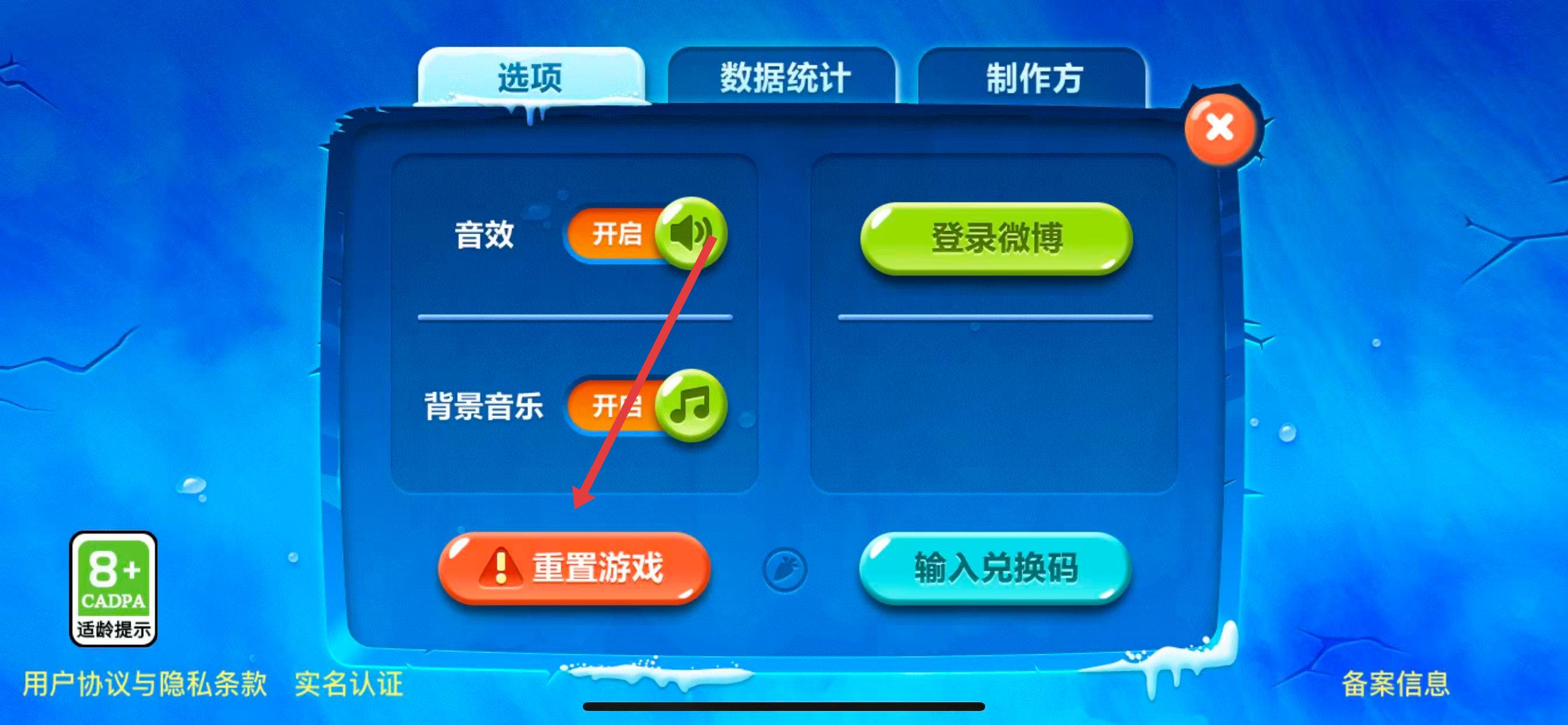 3、在設(shè)置菜單里,找到并點擊重置游戲按鈕,此時會彈出確認提示。