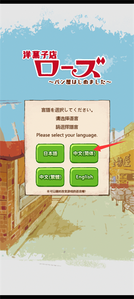 1、下載安裝好洋果子店rose1游戲后,點擊進入,在正式進入游戲之前就會有語言選擇,日本語/中文簡體/中文繁體/英文不同選項,可以根據(jù)自己需求選擇,點擊中文簡體進入;