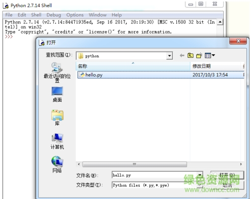 4、打開python解釋器,點擊頂部的【file】在彈出的選項中點擊【open】,選擇您剛保存的文件,點擊【打開】。