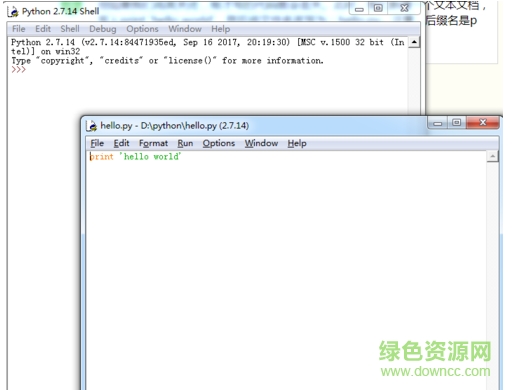 3、如果您直接關(guān)閉,剛才寫的代碼就會丟失。此時,您需要新建一個文本文檔,寫入print 'hello world',然后將文件名改寫為:hello.py。