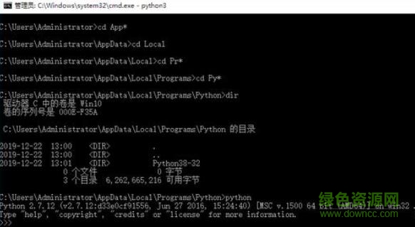 然后我們不退出cmd,繼續(xù)執(zhí)行python3