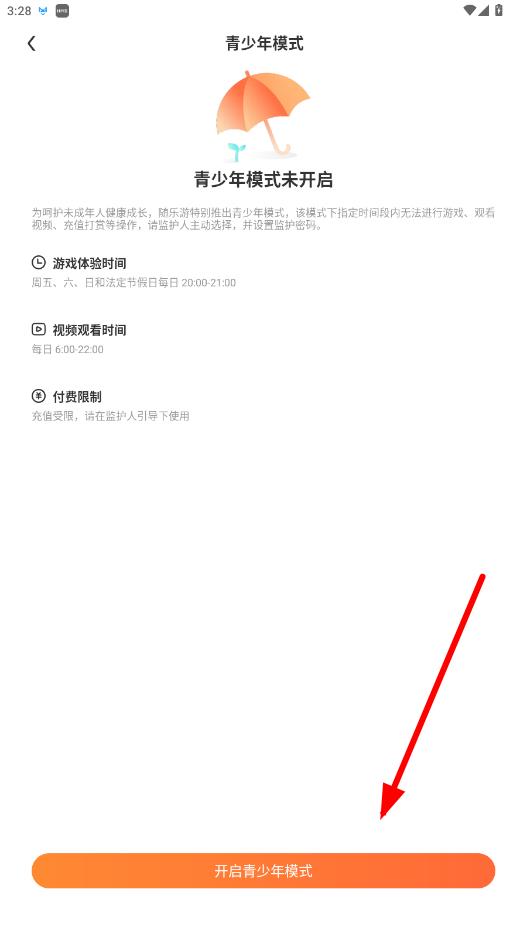 4、進入青少年模式頁面后,點擊開啟青少年模式按鈕,按照提示完成設置。