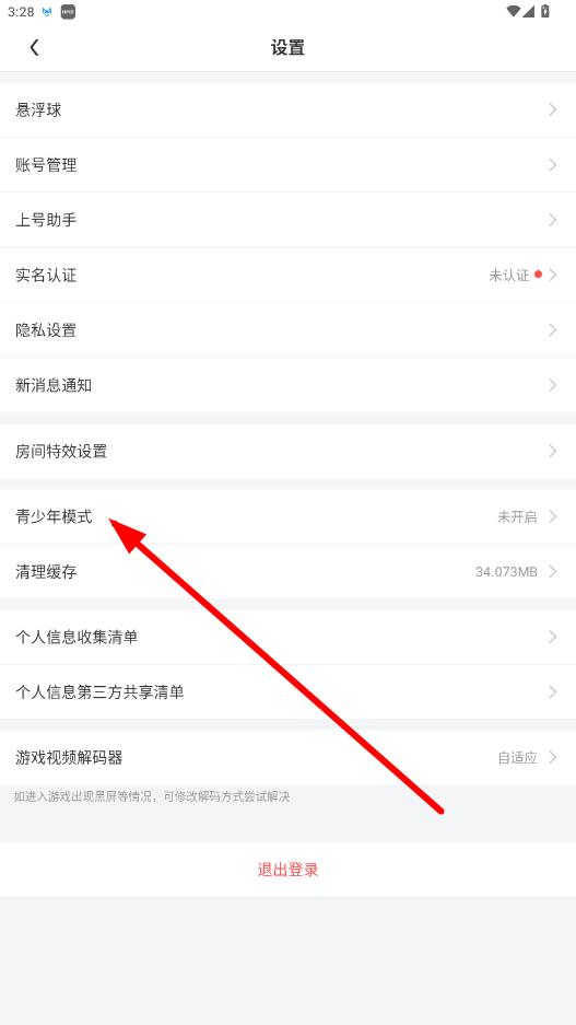 3、在設置頁面中,找到并點擊青少年模式選項。