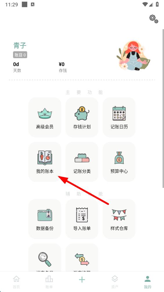 2、在個(gè)人功能界面中,找到并點(diǎn)擊我的賬本選項(xiàng),進(jìn)入賬本管理頁(yè)面。