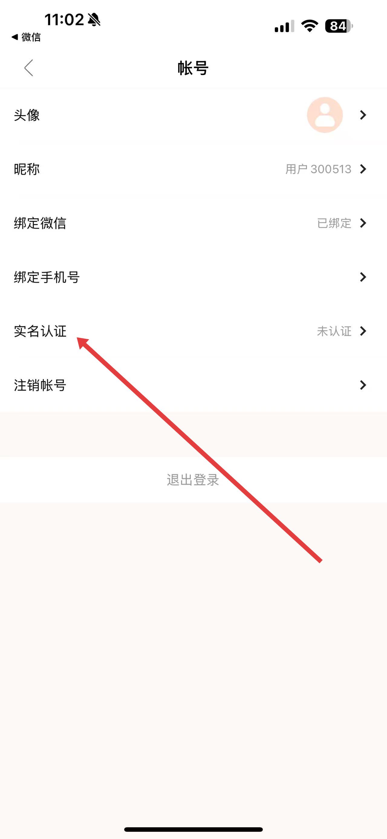 3、在帳號設(shè)置界面里,找到并點擊實名認證選項。