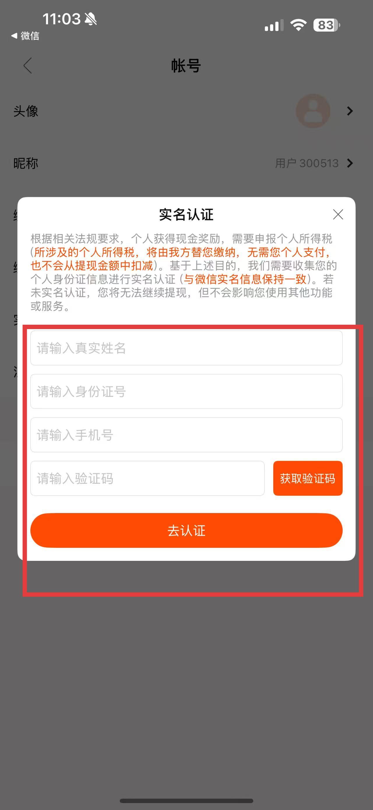 4、依次輸入真實姓名、身份證號、手機號,點擊獲取驗證碼并填入收到的驗證碼,最后點擊去認證,完成實名認證。