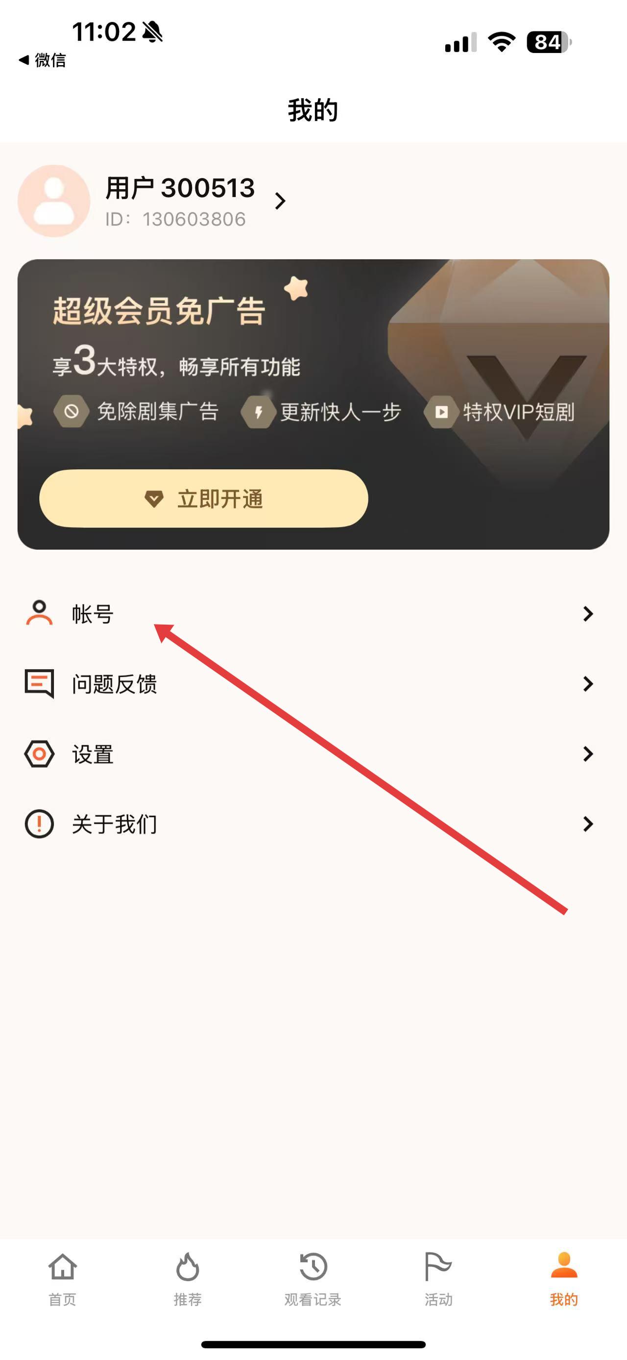 2、在個人頁面中,點擊帳號選項,進入帳號設(shè)置界面。