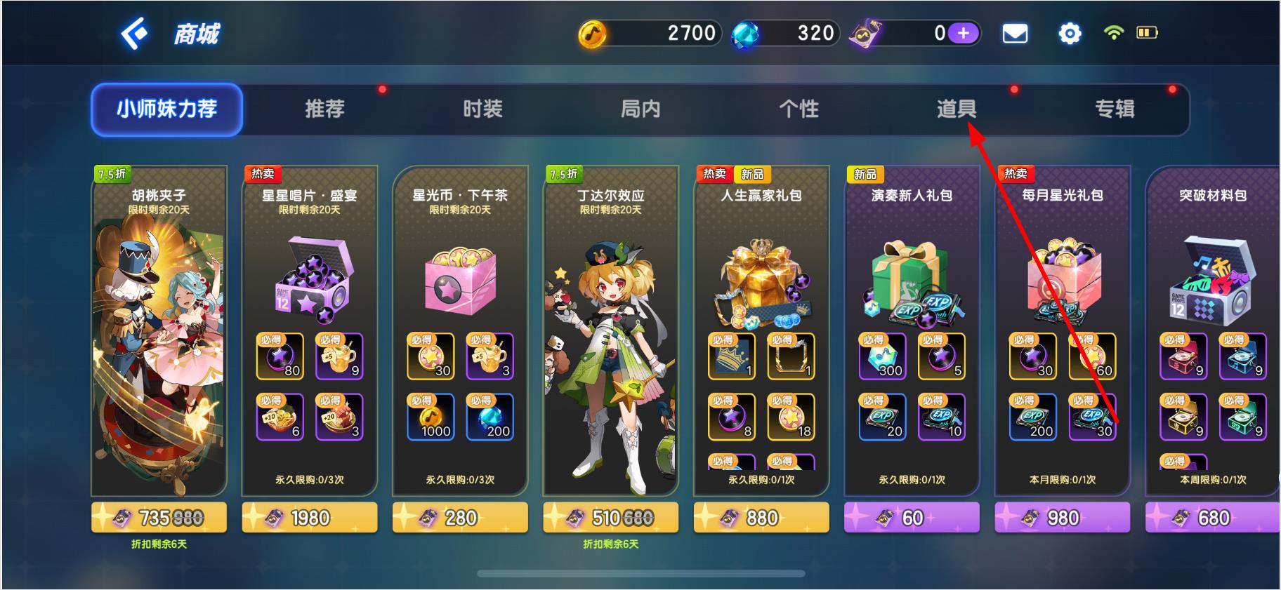 2、在商店頁面,點(diǎn)擊頂部的道具選項(xiàng)卡。