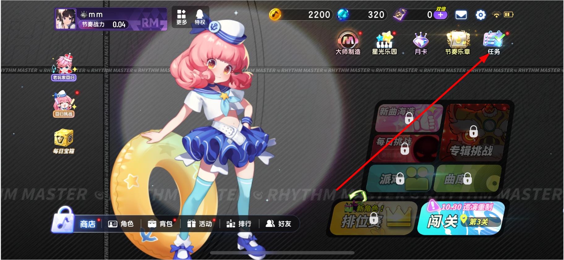 1、進(jìn)入游戲主界面點(diǎn)擊右上方任務(wù)圖標(biāo)。