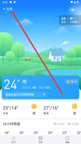 2、在進入到應(yīng)用首頁中,可以點擊左上方城市區(qū)域,進入編輯。