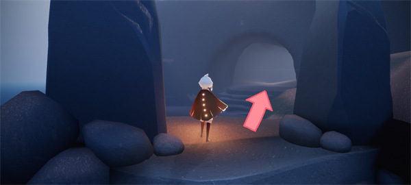 2、進入到這個地圖中之后,我們就需要往前走,可以看到門后右邊會有一個山洞樓梯,走進去;