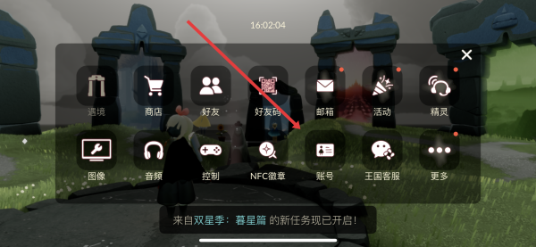 1、進入光遇游戲,在遇境場景中,點擊屏幕右上方的齒輪設(shè)置圖標(biāo),打開設(shè)置菜單。