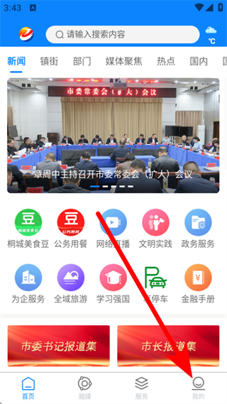 1、在出彩桐城的首頁,需要點(diǎn)擊底部我的按鈕,進(jìn)入個(gè)人的頁面。