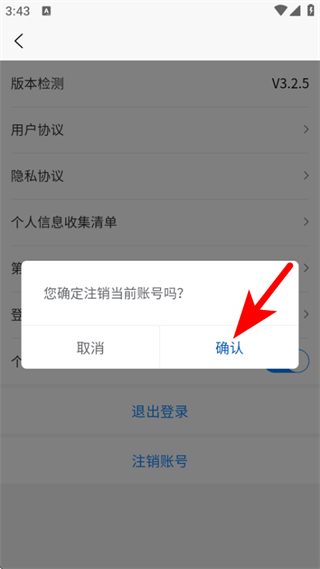 4、在系統(tǒng)的提示框中,我們要點(diǎn)擊確認(rèn),從而完成賬號(hào)注銷流程。