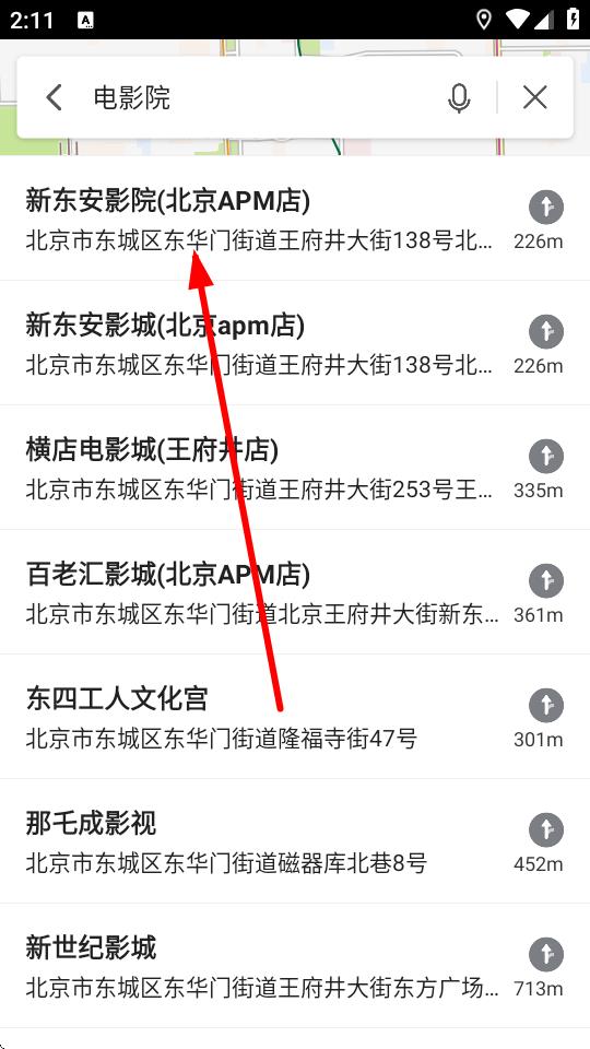2、在搜索結(jié)果中選擇具體地點,如新東安影院北京APM店。