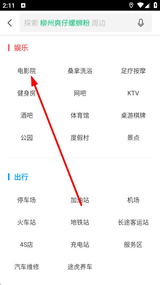 1、打開凱立德導(dǎo)航APP進入主界面,點擊探索周邊找到想去地點,比如點擊電影院。