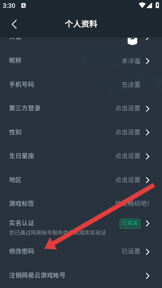 1、在個人資料的頁面中找到修改密碼選項并點擊,進(jìn)入修改密碼的驗證碼校驗頁面。