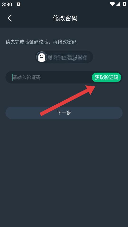 2、在驗證碼校驗頁面,點擊獲取驗證碼按鈕,將收到的短信驗證碼輸入到請輸入驗證碼框中,點擊下一步按鈕。