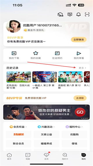2、在個(gè)人中心的頁(yè)面內(nèi),點(diǎn)擊歷史記錄右側(cè)更多的按鈕。