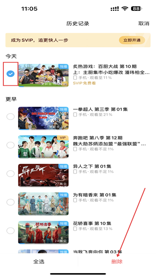 4、勾選需要?jiǎng)h除的記錄后,再點(diǎn)擊刪除的按鈕即可完成。