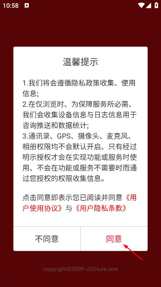1、打開郵掌柜應(yīng)用,彈出“溫馨提示”框,認(rèn)真閱讀后點(diǎn)擊“同意”,進(jìn)入到登錄頁面。