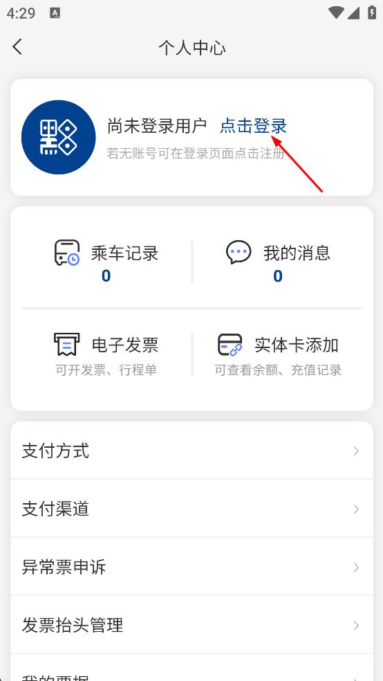 2、在個人中心頁面,找到“點擊登錄”按鈕,點擊該按鈕。