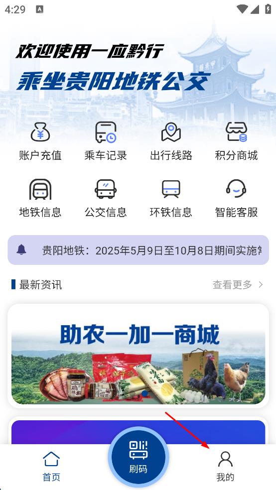 1、打開一應黔行APP,進入首頁后,點擊頁面右下角“我的”選項。
