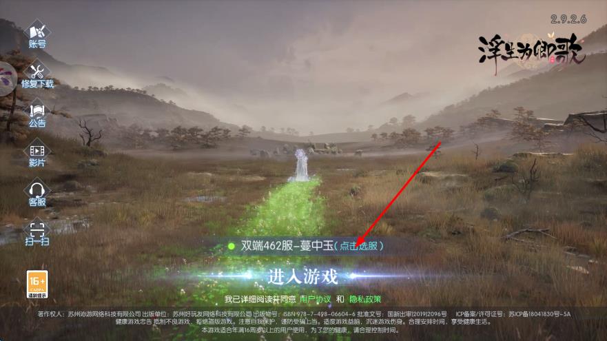 1、打開(kāi)浮生為卿歌游戲,進(jìn)入到游戲登錄界面,點(diǎn)擊點(diǎn)擊選服位置。