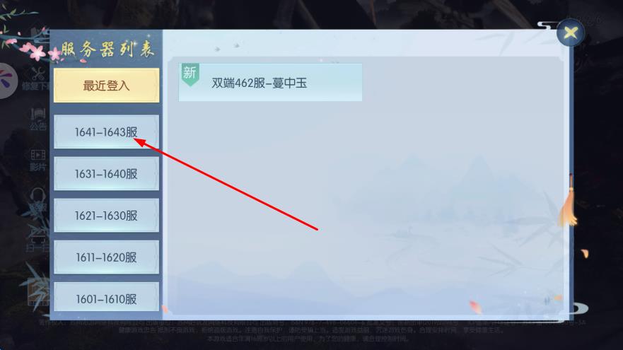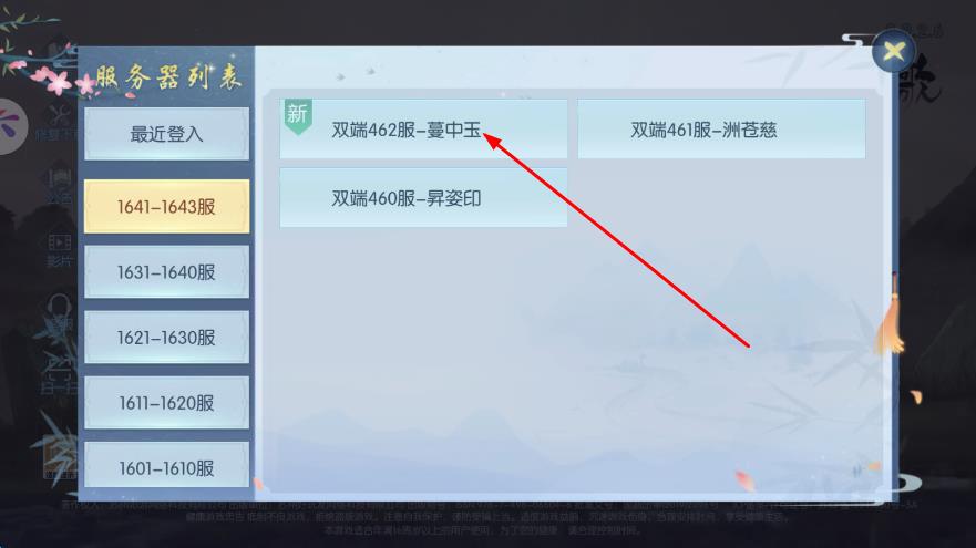 2、在彈出的服務(wù)器列表界面,點(diǎn)擊左側(cè)的最近登入欄目。