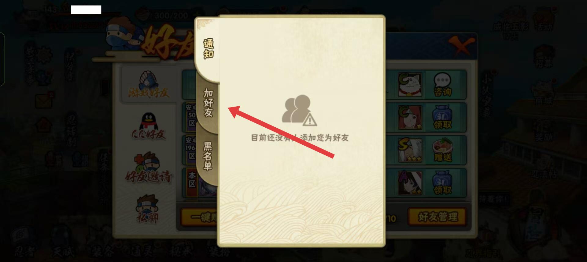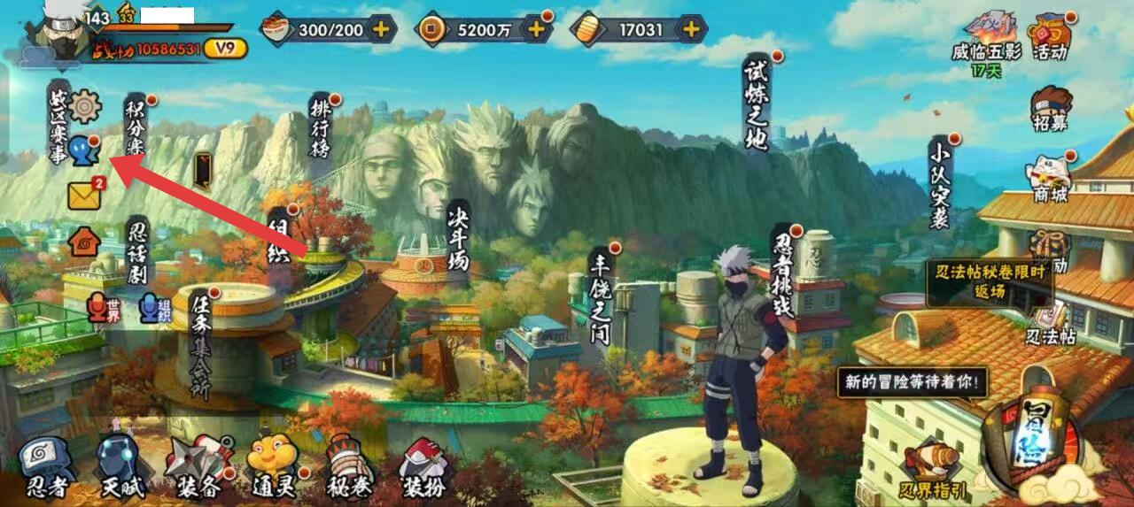 1、打開火影忍者游戲,在游戲主界面中點擊左側(cè)的好友圖標,進入好友相關(guān)界面。