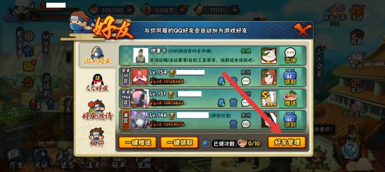 2、在好友界面里,找到并點擊右下方的好友管理按鈕,進入好友管理操作頁面。