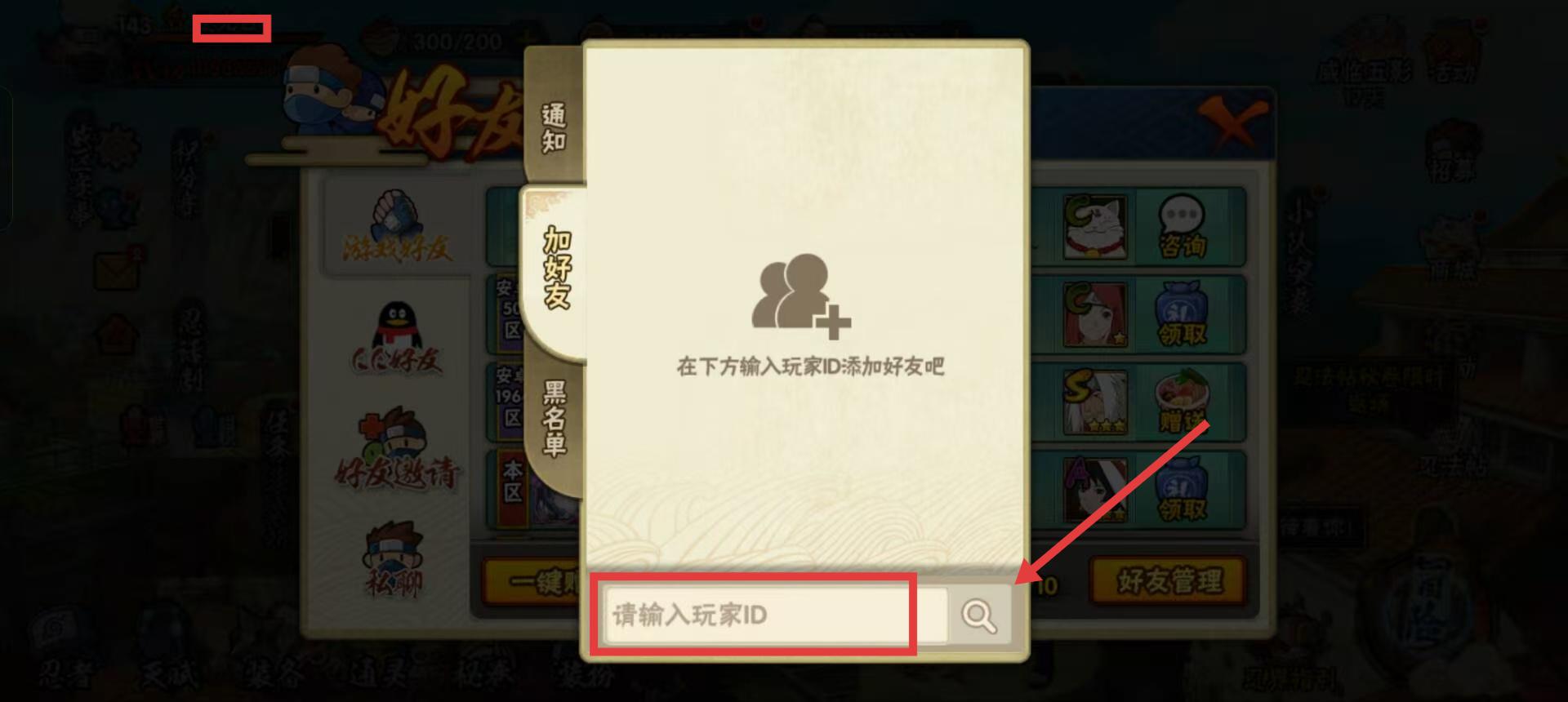 4、在添加好友界面下方的輸入框中,輸入想要添加的玩家ID,然后點擊輸入框右側(cè)的放大鏡圖標,即可發(fā)送加好友申請。