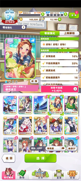 3、所以每個角色的育成難度是相差極大的,比如米浴需要跑3200米的比賽還必須奪冠,而櫻花進(jìn)王只需要跑1600米,因此培育櫻花進(jìn)王只需要考慮速度和力量屬性,對于前期羸弱的卡組來說壓力很小;
