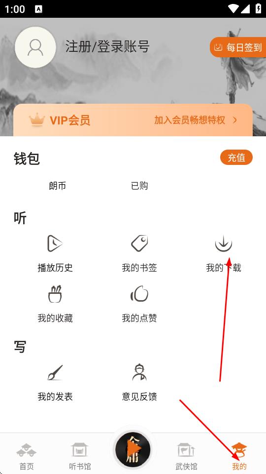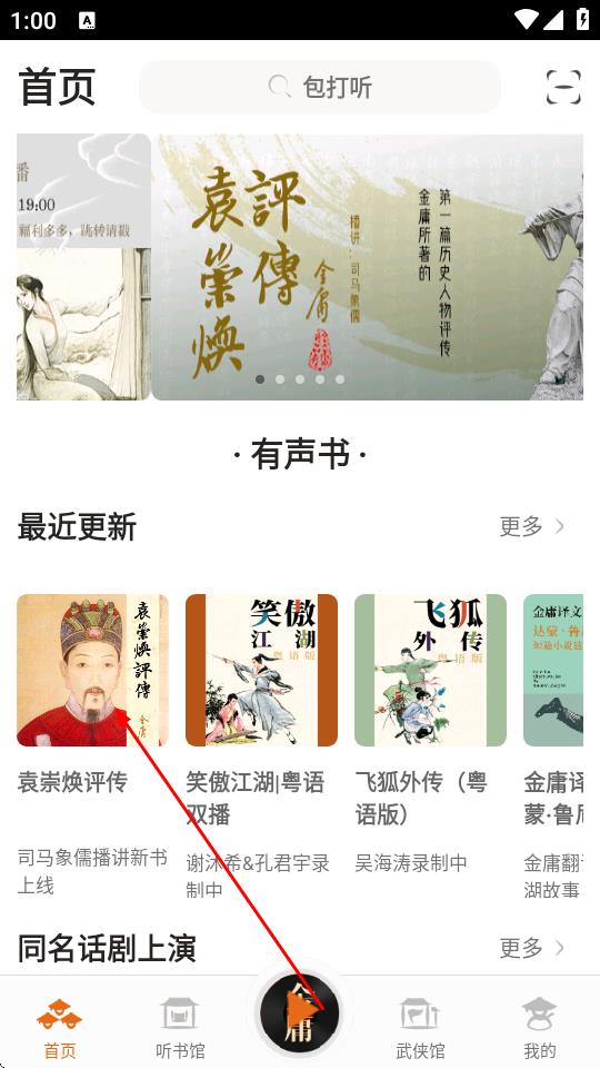 1、打開金庸聽書App,找到想要下載音頻的有聲書,點擊進入。