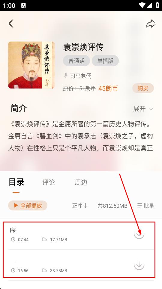 3、選擇需要下載的音頻集數(shù),點擊右側(cè)的下載圖標進行下載。