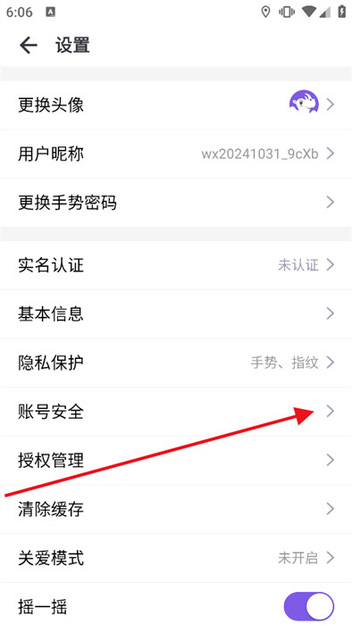 3、接著,在這個(gè)頁面找到【賬號安全】板塊,并點(diǎn)擊繼續(xù)跳轉(zhuǎn)頁面;