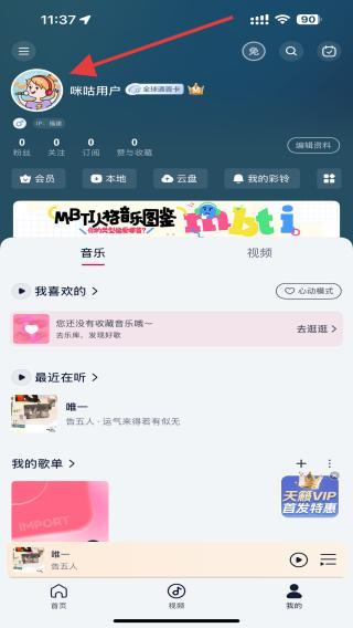 1、打開(kāi)咪咕音樂(lè)APP,進(jìn)入到首頁(yè)并點(diǎn)擊頁(yè)面底部我的圖標(biāo)。