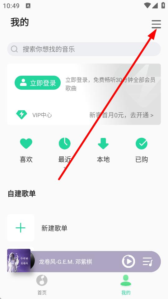 1、打開魅族音樂應(yīng)用,在我的頁面中,點擊右上角的更多圖標。