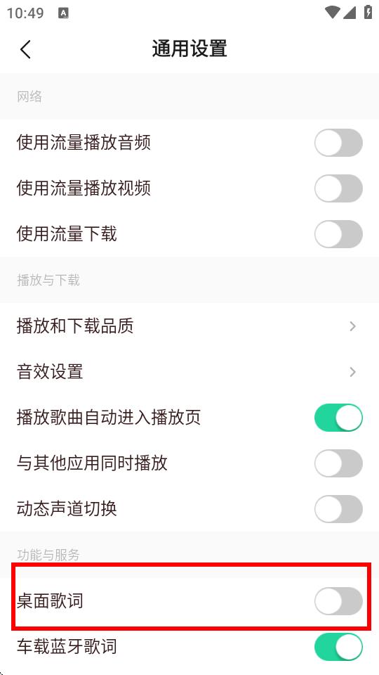 3、在通用設(shè)置頁面中,找到桌面歌詞選項。