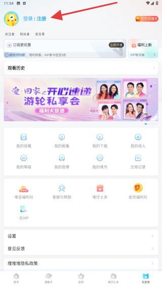 2、在個(gè)人中心頂部的點(diǎn)擊登錄/注冊(cè)按鈕,即可彈出登錄的頁(yè)面。