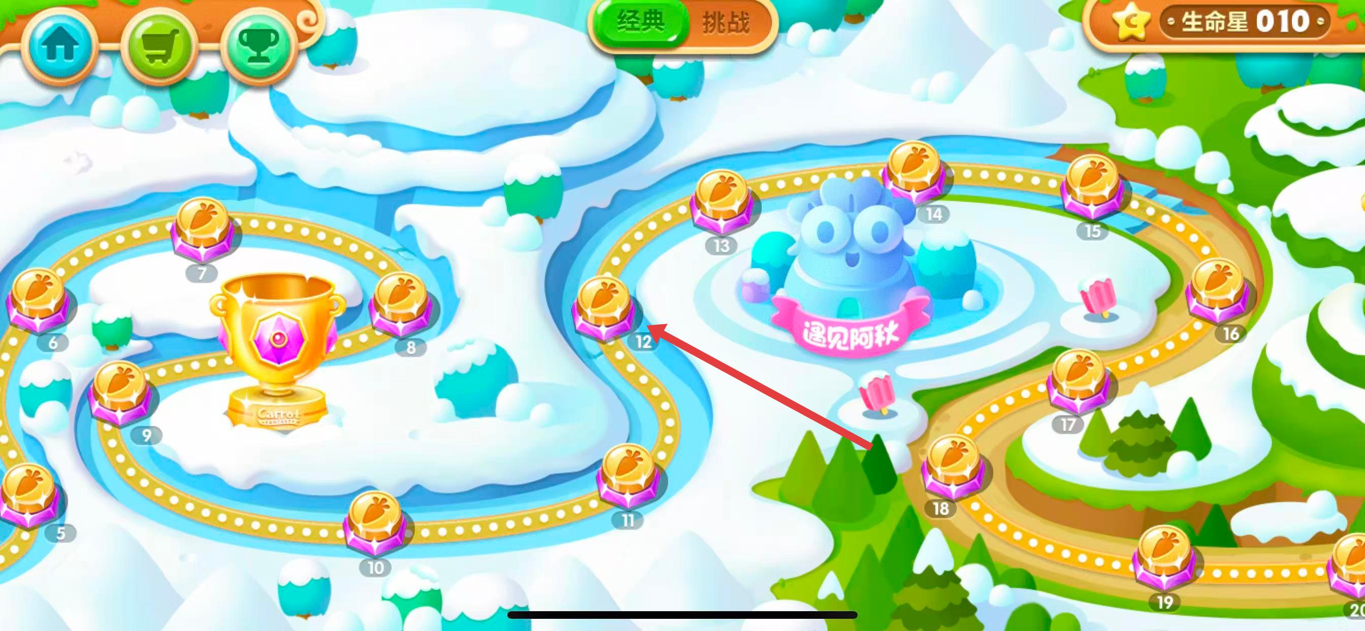 2、在關(guān)卡選擇界面,點(diǎn)擊想要查看額外任務(wù)的具體關(guān)卡,如第12關(guān)圖標(biāo),進(jìn)入關(guān)卡詳情頁(yè)。