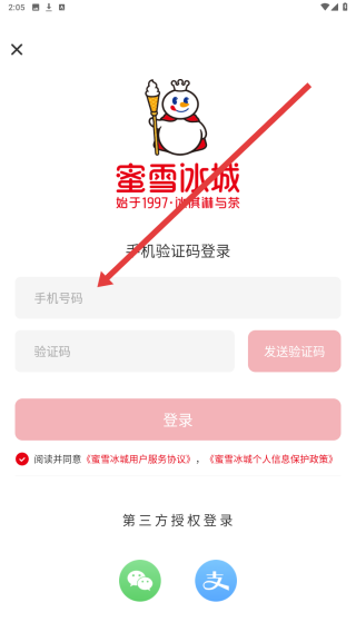 3、在登錄頁面中,點(diǎn)擊輸入框填寫手機(jī)號(hào)以獲取驗(yàn)證碼后完成登錄操作。