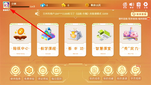 1、打開律動(dòng)達(dá)人app,進(jìn)入首頁(yè)后,點(diǎn)擊左上角的頭像區(qū)域,進(jìn)入個(gè)人信息頁(yè)面。