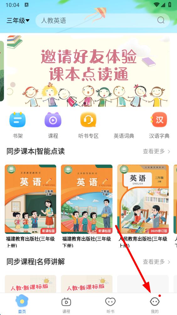 1、打開課本點讀通app,點擊底部導(dǎo)航欄中的我的,進入個人相關(guān)頁面。